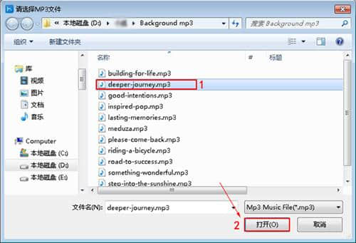 2.在弹出窗口中选择音乐以添加背景音乐;