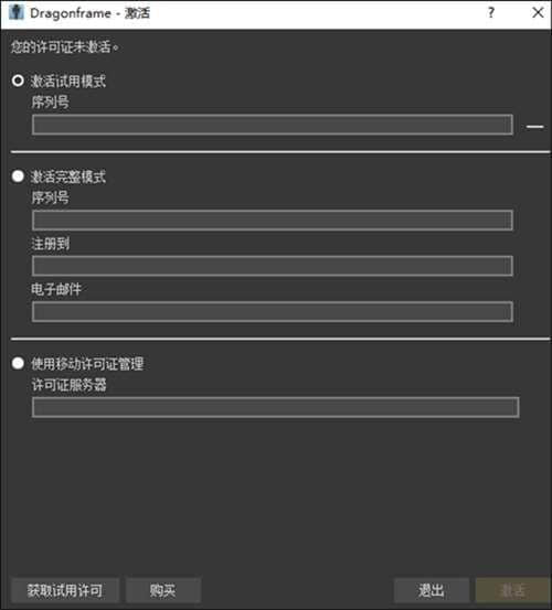6.双击电脑桌面快捷程序Dragonframe 4打开,需要进入激活。