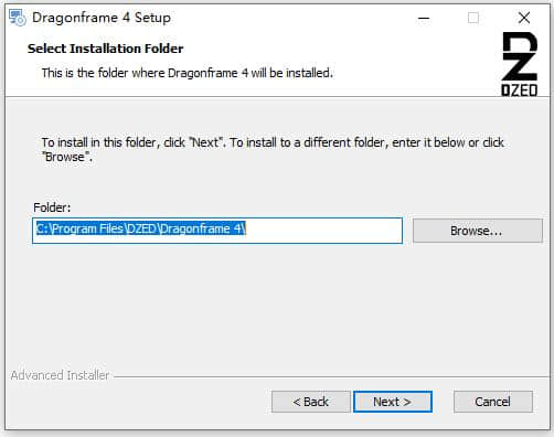 3.选择安装位置。默认安装位置是C:程序文件DZEDDragonframe 4。如果需要更改,请单击右侧的浏览器。如果没有变化,或点击下一步。