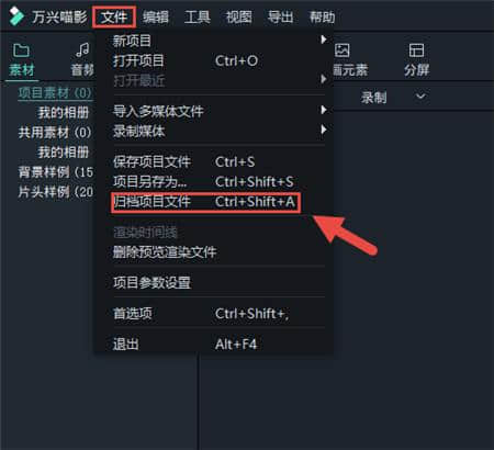 保存项目文件时,万兴妙影不会存储音频或图像文件,只会根据文件名和位置存储对这些类型媒体文件的引用。保存项目文件后,如果项目中的材料被修改(如重命名、删除或修改保存路径),程序将无法通过原始材料保存路径打开项目。为了避免这种情况,建议您选择“文件”下的“存档项目文件”进行保存,这样您的原始材料和项目将保存在wfp文件中,以后您可以直接打开项目进行编辑。