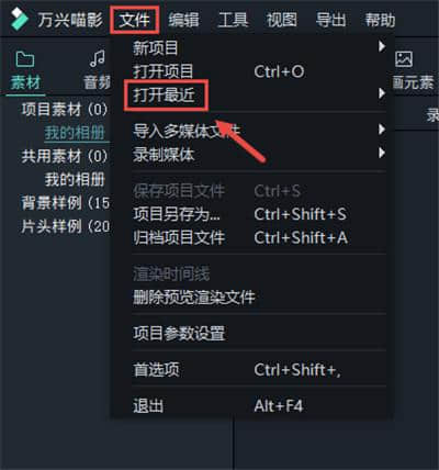 1.为确保输出没有万兴妙影品牌水印,可购买万兴神剪手会员并登录,或使用万兴神剪手破解版本,购买成功后再次登录万兴妙影,点击文件菜单下的“打开最近”导入项目文件(。wfp)保存在免费版本中并再次输出。