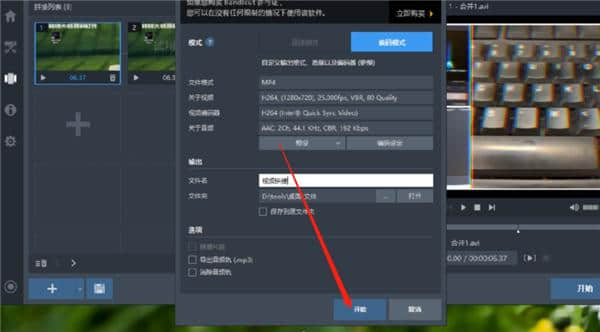 4.调整好拼接顺序后,点击界面右下角的开始按钮,进入拼接文件的操作界面。