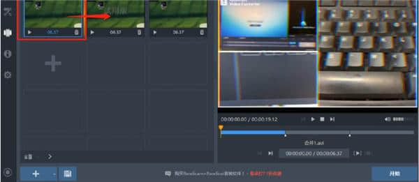 3.单击打开按钮,然后您可以在软件界面的左侧看到添加的文件。选中后,左右拖动调整拼接顺序。