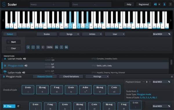 2.在Scaler钢琴键盘上将所选比例显示为突出的音符。