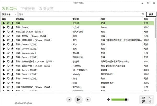 鱼声音乐免费版免费下载是影音软件分类为你带来更多的无损音乐轻松畅听电脑软件,创佳软件园小编接下来针对鱼声音乐软件作一番介绍,小编亲测鱼声音乐v5.0.0后觉得还不错,值得一用!希望您能喜欢!