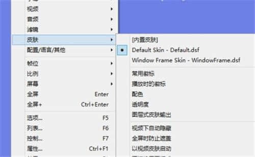 3.更改播放器的皮肤:右键单击播放器窗口,在弹出的扩展菜单中选择“皮肤”,然后可以从其扩展面板中使用其他皮肤。