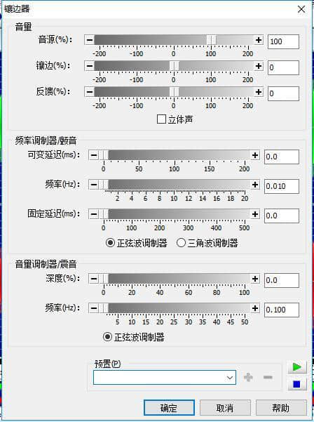4.GoldWave允许很多音效,比如:反转、回声、晃动、法兰、动态和限时、强)、翘曲等。