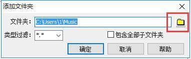 3.点击“文件夹”按钮后,会弹出一个新窗口“添加文件夹”。单击窗口后面的文件夹图标,选择存储音频文件的目录,然后单击“确定”按钮将文件添加到列表中。
