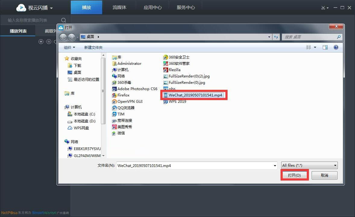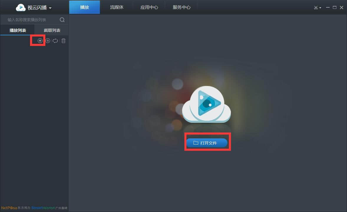 1.首先需要进入视云闪播的主界面,直接点击主界面的“打开文件”选项,或者点击左栏的播放列表框。