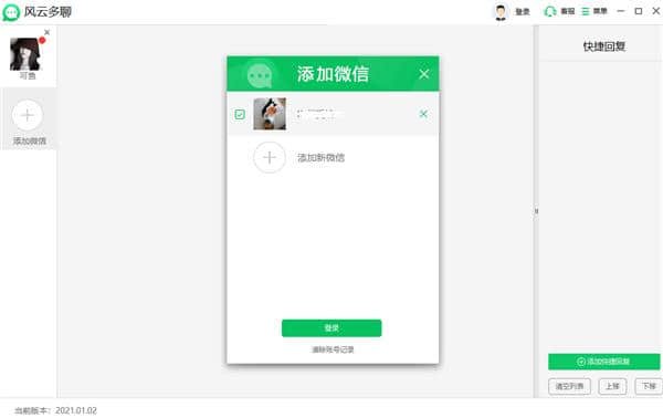 风云多聊免费版免费下载是属于聊天软件的一款多功能的微信多开聊天神器电脑软件,创佳软件园小编给各位带来了风云多聊下载以及使用介绍,总体来说这款风云多聊v1.6.3软件通常比较操作简单容易上手,是很多用户必备选择,快来选一个适合您的吧!