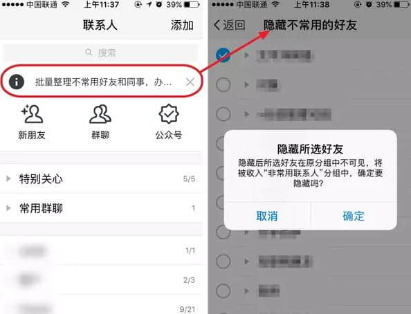 4.隐藏不常用的人