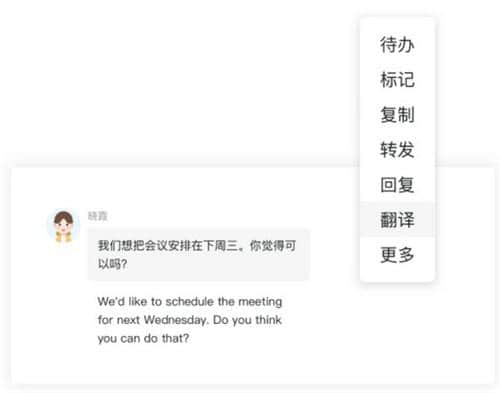 打破语言障碍,与外国同事沟通困难?英语会话可一键翻译,群内可设置同步自动翻译,助力跨界合作。