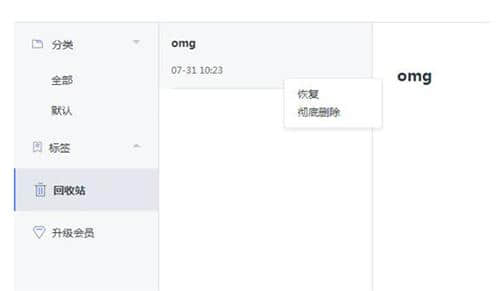 1.如果您在使用过程中不小心删除了之前编辑过的文本,实际上用户可以在回收站中将其完全还原。单击左列中的回收站选项,选择要还原的章节,然后右键单击还原选项。当然,也可以选择完全删除,但删除后将无法恢复,如下图所示: