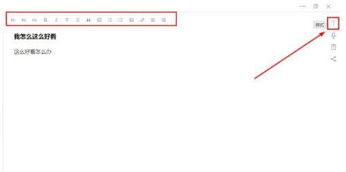 2.选择要调整的文本,点击顶部红框中的前三个选项,帮助用户调整字体大小。从左到右,分别是标题一、标题二、标题三。每个选项可以调整的字体大小是不同的。另外,右边的两个选项可以调整字体粗细和斜体。