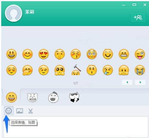 4.在和朋友聊天窗口,和其他聊天软件一样,可以点击表情符号给朋友发送表情符号。
