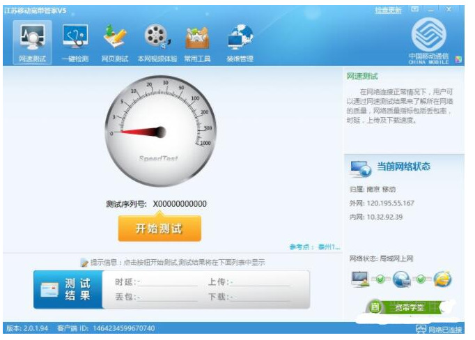 江苏移动宽带管家是专门为江苏移动用户提供的电脑宽带上网辅助软件。具有宽带故障诊断与修复、宽带测速、路由器配置等便捷的互联网接入辅助功能。,让用户可以轻松访问互联网。