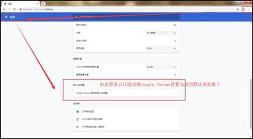 3.将谷歌浏览器设为默认浏览器,点击浏览器右上角的三条横线,然后点击左侧菜单栏的【设置】,最后点击【将谷歌chrome浏览器设为默认浏览器】。