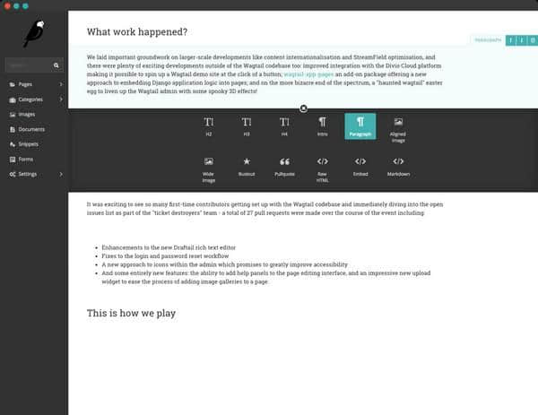 Wagtail软件下载,一个非常专业的网页管理中心,用户可以在这里自由编辑众多内容,构建丰富的后台模式。Wagtail让我们可以轻松管理这里的所有内容,同时对各种图片副本进行修改和编辑,不断带来更多的后期完善操作。