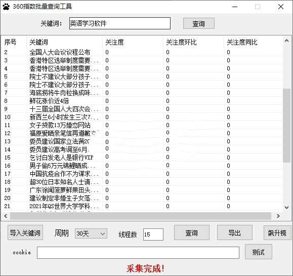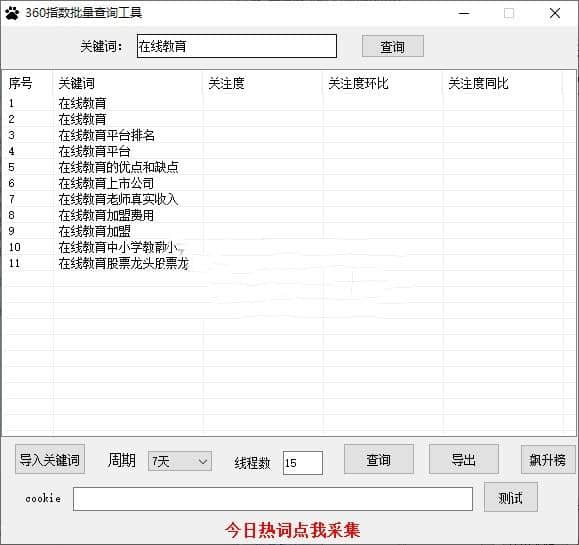 360指数批量查询工具超智能在线热词分析工具Software download为很多媒体编辑提供了很多便利,只是搜索相关词。360指数批量查询工具这里展示了各种附件,让你快速获取今天的热词,添加更多关注,不断改善你的流量状况。