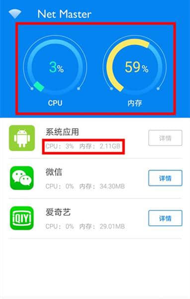 6.在设备中,您可以检查应用程序占用的总CPU和内存。