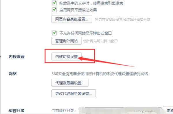 4.进入高级设置界面后,点击页面中间的内核开关设置。