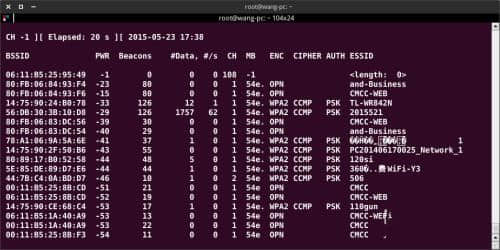 2.使用命令airodump-ng mon0(视情况而定)监控周围的所有ap信号。
