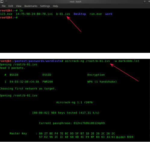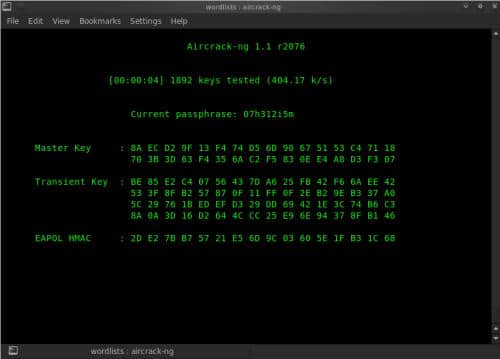用字典(文件)加WPA破解时的剩余时间和完成百分比。