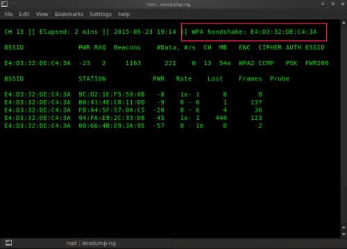 3.选择要监控破解的wifi名称,写下bssid,抓起wifi握手包。
