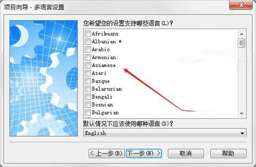 5.进入“多语言设置”页面,选择程序支持的语言。