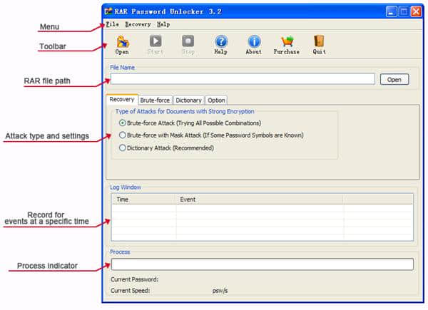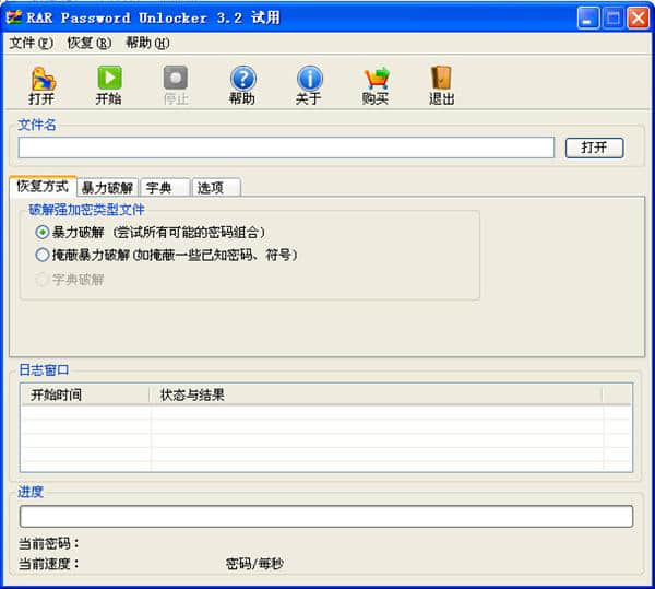 1.打开软件程序主界面,选择要破解的压缩包文件。