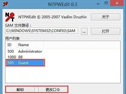 3.它可以帮助用户查看SAM文件,并可以强制修改Windows帐户的密码和解锁用户帐户。