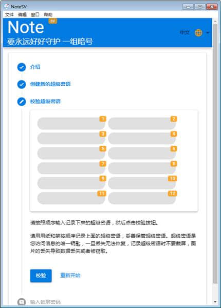 3.输入您要按顺序保存的密码,然后单击“验证”对其进行加密。