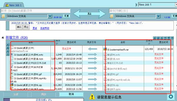 4.自动扫描两个文件夹中的文件,两个文件夹中的内容会在软件界面中分别显示。