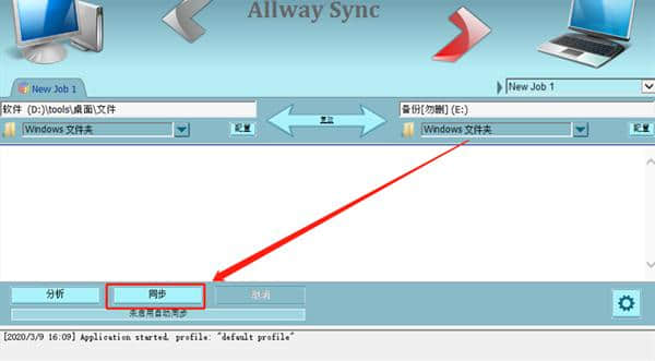 3.选择两个需要同步文件的文件夹后,可以在界面左下方选择同步。