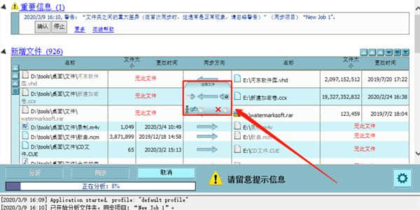 5.最后在界面中点击同步方向,选择将文件夹A的数据同步到文件夹B,就足以保证两个文件夹中都有这个文件。