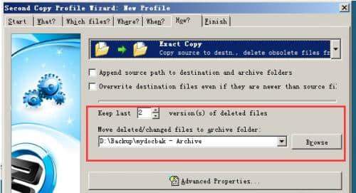 7.选择备份方法。在这里,选择复制文件和删除旧文件。