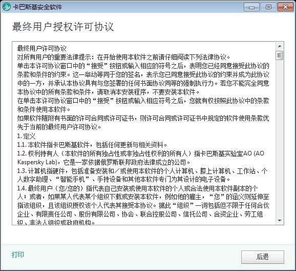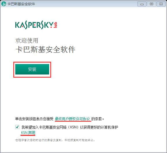 第三步。单击相应链接查看卡巴斯基实验室最终用户许可协议。您需要接受安装应用程序的条款。