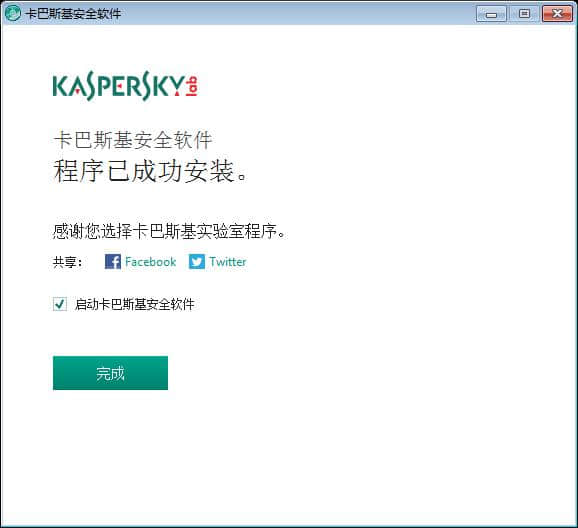 第五步。等待安装完成。确保选中卡巴斯基安全软件复选框,然后单击“完成”按钮。