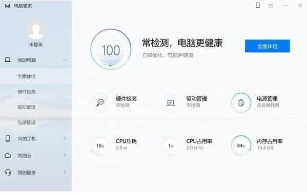 电脑管家采用极简+经典的组合界面,从硬件、驱动、功率管等方面全面检测电脑。电脑的状态一目了然,还支持对体验中发现的小问题一键解决。