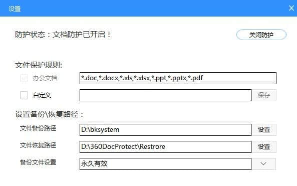2.当备份文件达到30天时,30天之前备份的文档将被自动删除(也可以设置永久保留)。