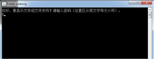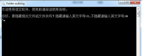 第三步:点击悟空软件,弹出如下对话框,询问是否要加密隐藏悟空文件夹,在键盘上输入英文字母Y,按回车键,包含你的秘密文件的悟空文件夹会立即消失。