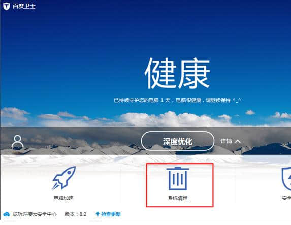 3.使用百度卫士清理后,电脑可以全速运行。