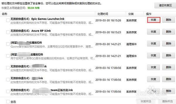 2.在恢复区域,您可以看到隔离文件的列表。