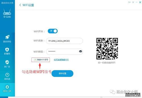 2.选中隐藏WIFI信号。