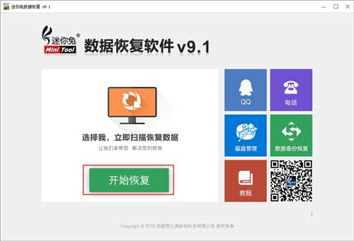 第一步:打开迷你兔数据恢复工具软件,点击左下角的“开始恢复”,进入磁盘扫描界面。