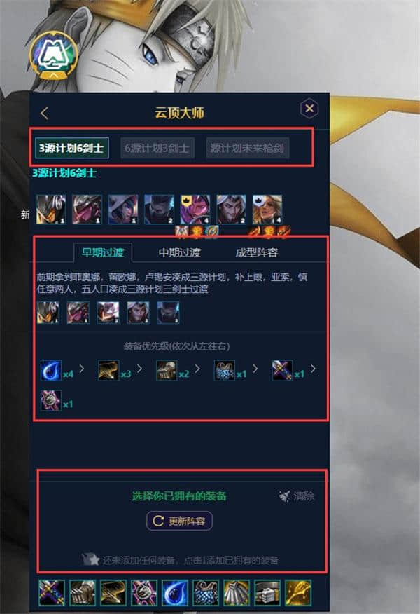 4.我在这里选择了源计划,推荐了三个阵容,英雄和装备的分析,以及这里更人性化的设计。