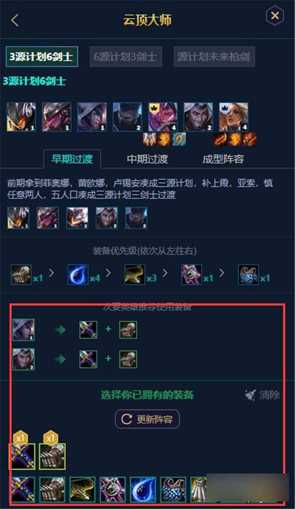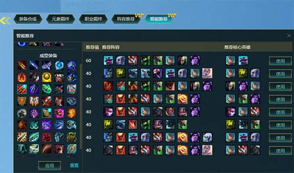 2.根据现有装备,快速匹配装备集成度高的顶级得分阵容,提高获胜概率。