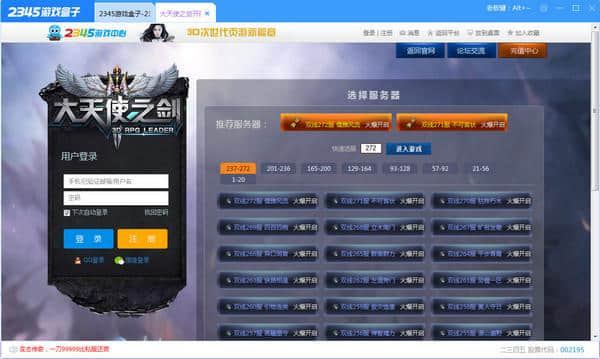 2345游戏大厅下载安装是一个好玩又好用的游戏中心,没有病毒和插件。2345游戏大厅神之戒版(以及如何删除)是直通网络版。最新最热的网络游戏,单机游戏,竞技游戏都有。《盛世世界》《神之戒》《血之战歌》《黑暗大天使》等优秀游戏可以自由发挥。