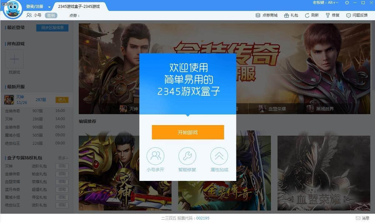 1.新增小号功能:可同时开启多个2345s,满足了当前页面游戏玩家同时扮演多个角色的需求,大大提升了用户体验。