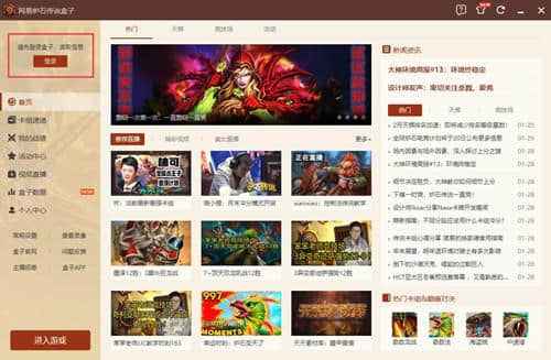 1.打开已安装的炉石传说盒子并点击左上角的“登录”按钮。炉石传说盒子.